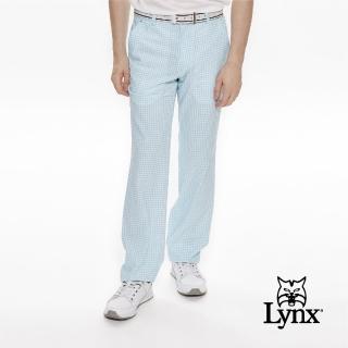 【Lynx Golf】男款四面彈性防潑水滿版印花平口休閒長褲(淺藍色)