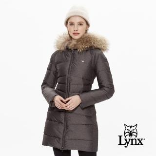 【Lynx Golf】女款可拆式毛條長版修身羽絨長袖外套(深灰色)