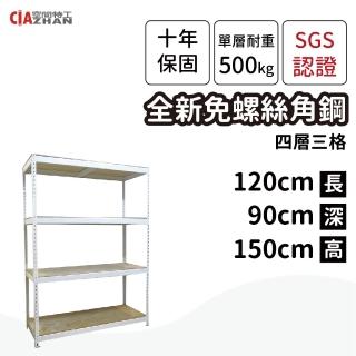 【空間特工】工業風雪皓白免螺絲四層角鋼架(90x120x150cm/置物架/角鋼架/層架/收納架/DIY組合架)