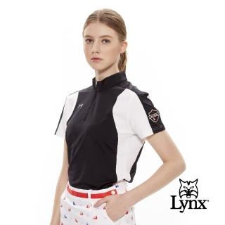 【Lynx Golf】女款吸汗速乾修身素面款短袖立領POLO衫/高爾夫球衫(黑色)