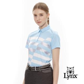 【Lynx Golf】女款吸汗速乾不規則橫條款短袖POLO衫/高爾夫球衫(淺藍色)