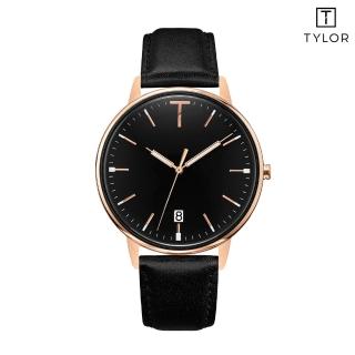 【TYLOR】黑面 玫瑰金框 黑色皮革錶 情人節/父親節(TLAD009)