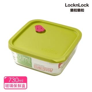 【LocknLock樂扣樂扣】耐熱玻璃保鮮盒/矽膠蓋/波浪/730ML/方型/綠色
