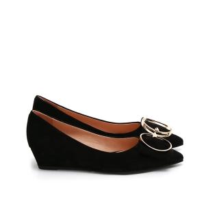 【FNACE】真皮日蝕飾釦契型跟鞋(百搭黑)