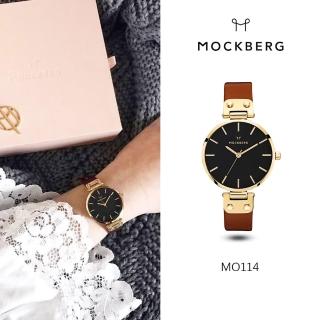 【MOCKBERG】瑞典品牌 34MM-黑面金框咖啡色皮革錶 七夕情人節(MO114)