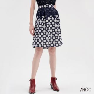 圓點印花,高腰打摺短裙,蕾絲裝飾,側口袋,後開隱形拉鍊