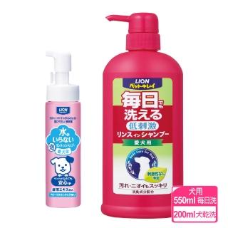 【LION 獅王】每日洗-犬用清潔潤絲二合一 550ML/瓶+愛犬乾洗用洗毛精 200ML/瓶(洗毛精)