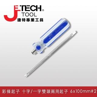 【JETECH】彩條十字/一字雙頭兩用起子 6x100㎜ #2(DLC6-100)