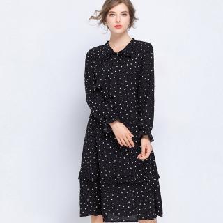 【A’bella 艾貝菈】黑領口綁結小白愛心木耳裙洋裝(中大尺碼/L-5XL)