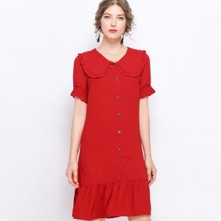 【A’bella 艾貝菈】囍紅娃娃領排扣百摺短袖洋裝(中大尺碼/L-5XL)