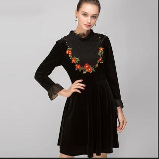 【A’bella 艾貝菈】玫瑰花圈刺繡黑絲絨短洋裝(中大尺碼/S-5XL)
