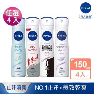 【NIVEA 妮維雅】止汗爽身噴霧150ml-4入