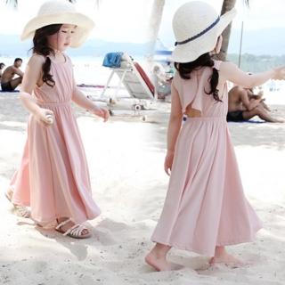 【橘魔法】心機小露背沙灘背心長裙洋裝 親子裝 大童 連身裙(橘魔法 Baby magic 現貨 沙灘裙 長洋裝)