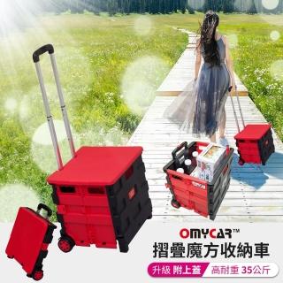【OMyCar】升級版 摺疊魔方收納車 附上蓋(購物籃 購物車 購物推車 購物拉車 耐重35公斤 可水洗)