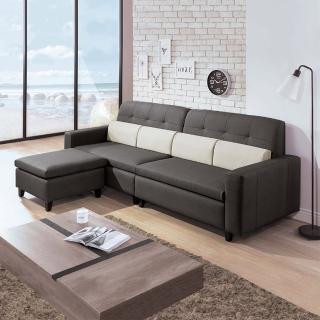 【BODEN】萊姆L型灰色貓抓皮沙發(贈腰枕-四人座+腳凳)