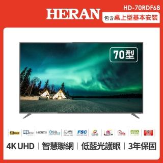 【HERAN 禾聯】70型 4K智慧連網液晶顯示器+視訊盒(HD-70RDF68)