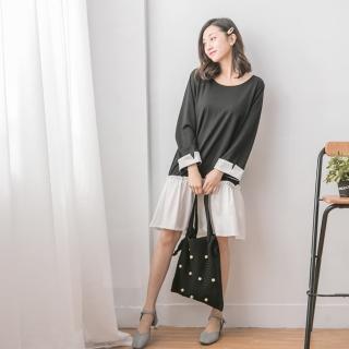【Abbie】休閒拼接荷葉圓領洋裝(現貨熱銷中)