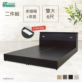 【IHouse】簡約風 插座房間組二件 床頭箱+床底 -雙大6尺