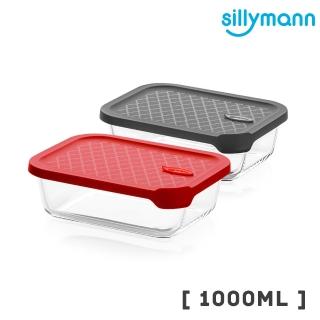 【韓國sillymann】100%鉑金矽膠微波烤箱1000ml輕量玻璃保鮮盒-長方型(可進洗碗機高溫清潔可沸水消毒)