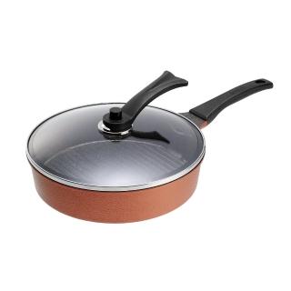 【SmileU 微笑出氣鍋】圓形條紋煎盤28cm 古銅金(出氣鍋/煎盤/烤盤)