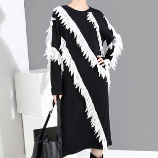 【Amodern】斜邊立體雪紡仿羽毛飛舞長洋裝(兩色/均碼)