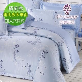 【Prawear 巴麗維亞】精梳棉植物花卉六件式兩用被床罩組藍天浪漫(加大)