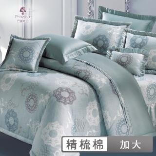 【Prawear 巴麗維亞】精梳棉圖騰六件式兩用被床罩組綠茵美景(加大)