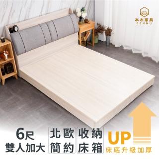 【本木】比亞 簡約貓抓皮靠枕收納房間二件組(雙人加大6尺 床頭+六分加厚床底)