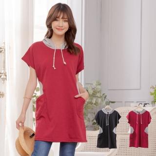 【衣心衣意中大尺碼】現貨-時尚造型雙色正反面拼接上衣(黑色 紅色 PQ1A3330)