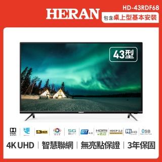 【HERAN 禾聯】43型 4K智慧連網液晶顯示器+視訊盒(HD-43RDF68)