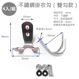 (4入/組)不鏽鋼掛衣勾(雙勾款)(衣帽勾)