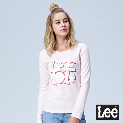 Lee 女款 編織圖案長袖圓領T恤 粉 101+