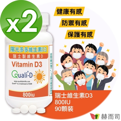 【Line導購3%+5千送10%無上限】赫而司 高單位維生素D3 800IU(90錠*2罐)瑞士Quali®-D陽光多多非活性D 防潮膜衣錠,增進鈣吸收